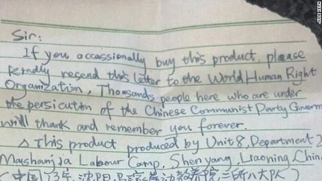 In 2012, an Oregon mother named Julie Keith opened up a package of Halloween decorations. The cheap foam headstones had been $5 at Kmart, too good a deal to pass up. But when she opened the box, something fell out that she wasn’t expecting: an SOS letter, handwritten in broken English by the prisoner who’d made and packaged the items.